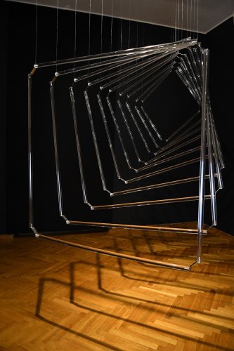 Instalacija ,,Horizon", jedan od nosećih radova izložbe, transformiše galerijski prostor u sugestivno polje perceptivnog istraživanja, stvarajući ambijent koji ,,beži ka horizontu". Upotrebom providnih materijala i reflerujućih površina, Dek destabilizuje odnos posmatrača prema fizičkom prostoru i otvara put ka nepoznatom. Dimenzija ketanja uvodi se mobilnom skulpturom ,,Spatial lines", dok je dizajnersko umeće i utisak ,,promišljene udobnosti" otelotvoreno serijom rasvetnih tela pod nazivom ,,Candle light".