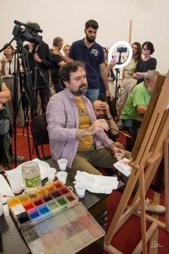 - This type of gathering was initiated by Giorgos Kordis, the most prominent Greek church painter of our time. He conceived a series of symposiums, not theoretical, but practical artistic symposiums, where artists would paint publicly, allowing audiences to witness the creative process firsthand and engage in dialogue with the artists. The first gathering took place in Thessaloniki around 2010, followed by one in Iași, and it gradually became a practice that has somewhat stagnated in recent years.