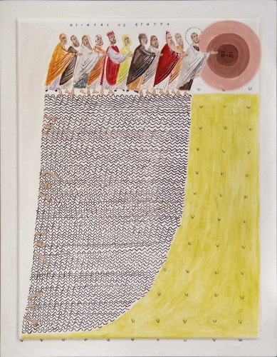 - When you observe historical frescoes, particularly in later Byzantine churches where a narrative approach to wall painting developed, you can find sections that are segmented much like a comic strip. Rectangular panels frame scenes conceived as self-contained dramatic units. In terms of media language - though not stylistically - this resembles what we now call comics. One could say that church wall painting is, in fact, a precursor to comics, and from that perspective, it is not surprising when contemporary artists move in that direction - it functions naturally and convincingly.